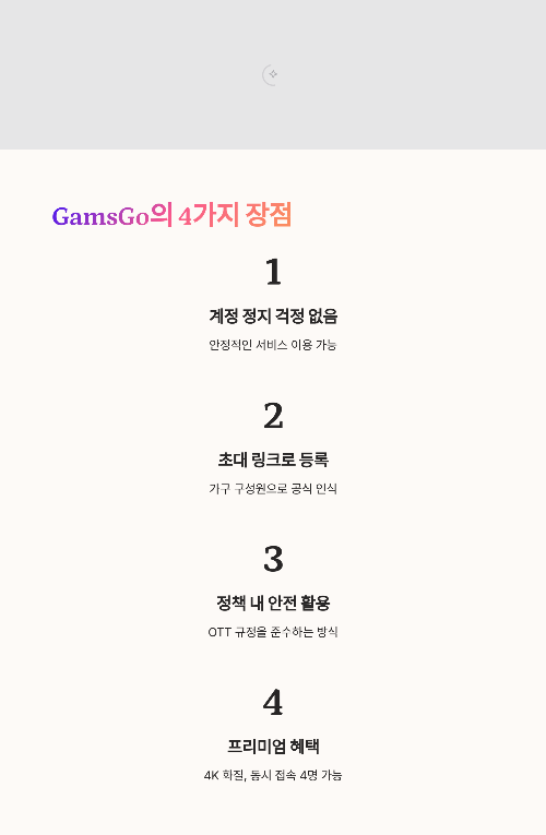 GamsGo는 ‘비밀번호 공유 방식’이 아니기 때문입니다.