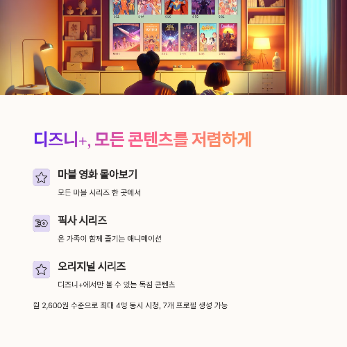 - 디즈니+ 6개월: 약 15,000원 (월 2,500원)