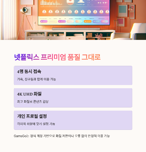 GamsGo는 정식 계정 기반이라 화질 제한이나 계정 오류 없이 안정적으로 이용 가능합니다.