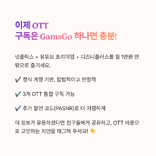 GamsGo 하나면 세 가지 OTT를 전부 저렴하게 이용할 수 있는 이유!