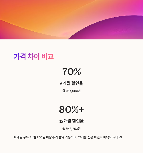 12개월 구독 시 월 기준 750원 이상 추가 절약이 가능합니다.