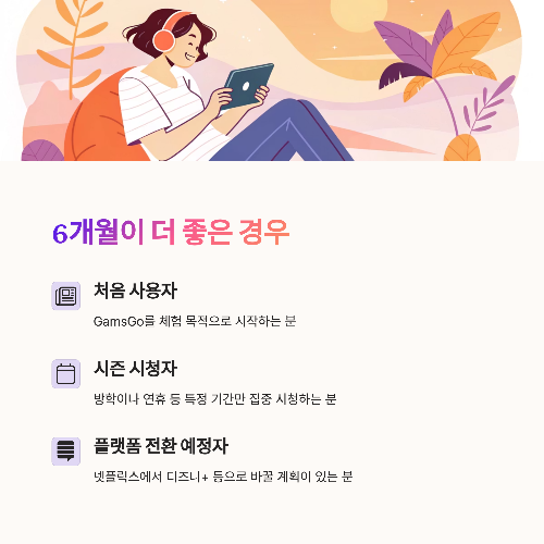✔ 6개월: 부담 없는 체험용, OTT 시즌 소비자에 적합
