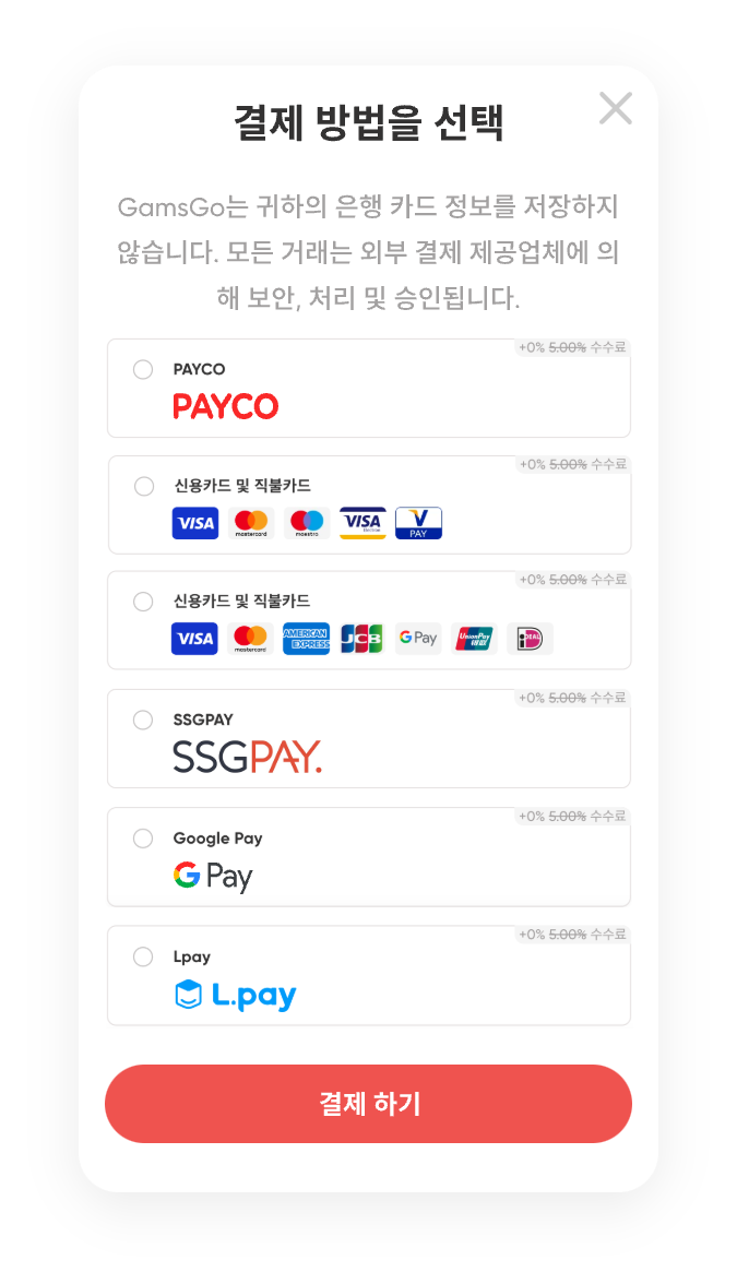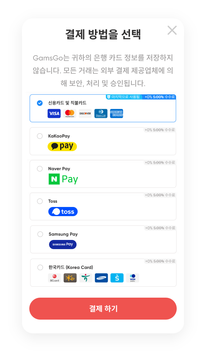 신뢰도 높은 결제 시스템도 GamsGo의 강점 중 하나입니다.