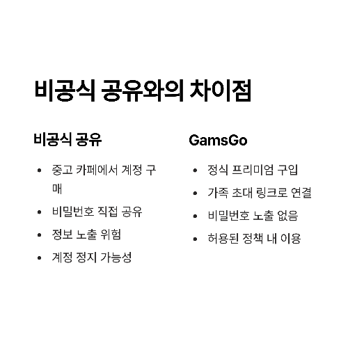 📌 비공식 계정 공유는 싸지만 위험해요.