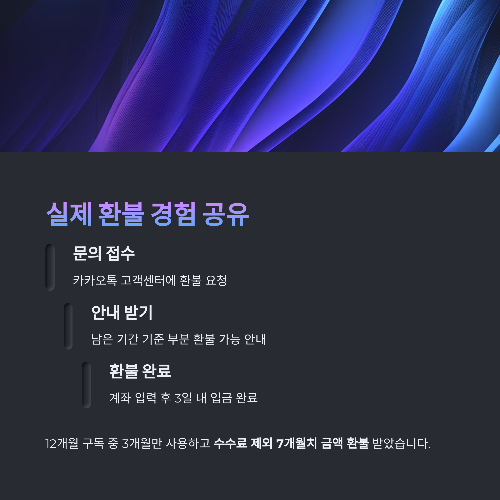 바로 잔여 9개월 중 수수료 제외하고 7개월치 금액을 환불받았습니다.