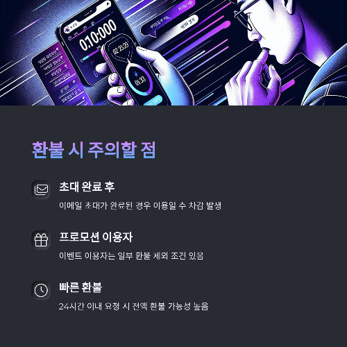 - 프로모션 또는 이벤트 이용자는 일부 환불 제외 조건이 있을 수 있어요