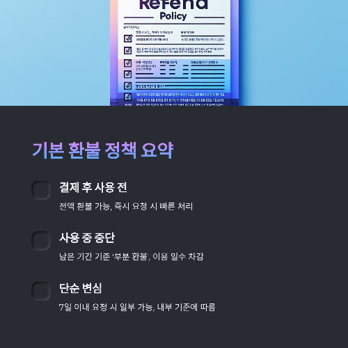 | 결제 후 사용 전 | 전액 환불 가능 | 즉시 요청 시 빠른 처리 |