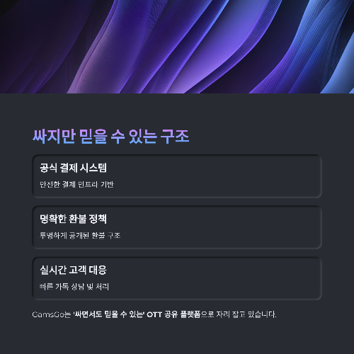 ‘싸면서도 믿을 수 있는’ OTT 공유 플랫폼으로 자리 잡고 있어요.