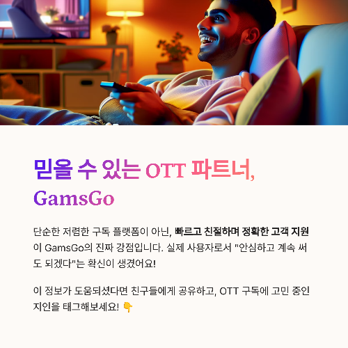 📌 GamsGo는 단순히 저렴한 OTT 구독 플랫폼이 아니라,