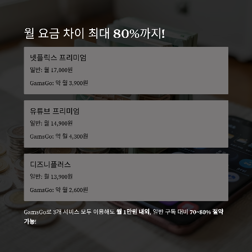 📌 GamsGo를 통해 3개 서비스를 다 구독해도 월 1만 원 내외,