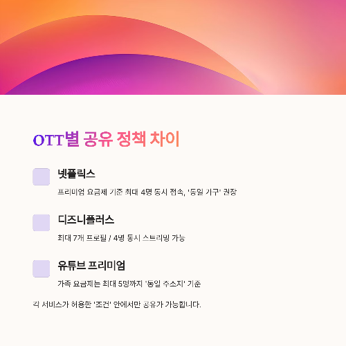 OTT마다 계정 공유에 대한 정책이 조금씩 다르다는 점이에요.
