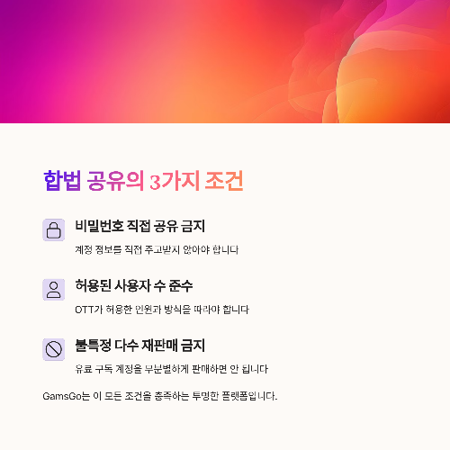 GamsGo는 OTT가 직접 허용한 공유 구조를 그대로 따르고,